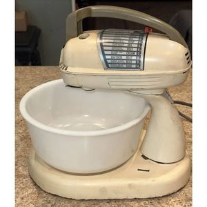 1950s Dormeyer Mixwell Stand-Up Mixer with Milk Glass Bowl Model 5100 Works!