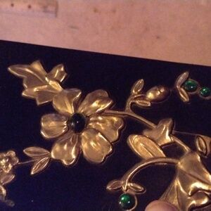 This exquisite jeweled box end features a stunning gold floral design accented with green details. Perfect for storing your precious jewelry pieces in style.