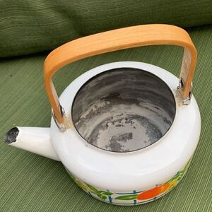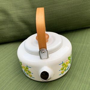 1950’s Fruit Persimmon Vintage enamel tea kettle floral design cottage core