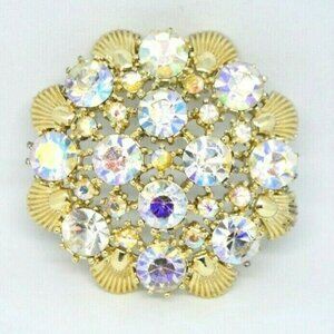 Vintage 1950s Gold Tone PEGASUS CORO Clear AB Rhinestone Flower Pin Brooch