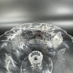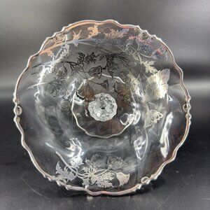 1950s HEISEY ORCHID Footed Pedestal Dish Bowl Silver Overlay Manganese 365nm UV