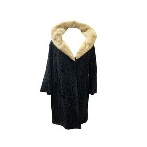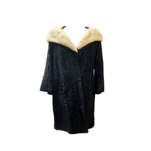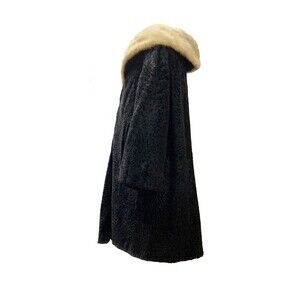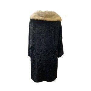 1950s HY Goodman Authentic Black Astrakhan Fur Coat With Mink Fur Collar