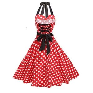1950s Halter Style Vintage Polka Dot Swing Dress