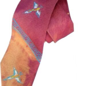 1950s Hand Painted Novelty Print Silk Necktie With Birds *