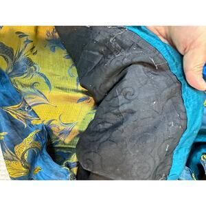 1950s Hand-Sewn Chinese Silk Brocade Jacket Quilted Lining Blue Gold Floral