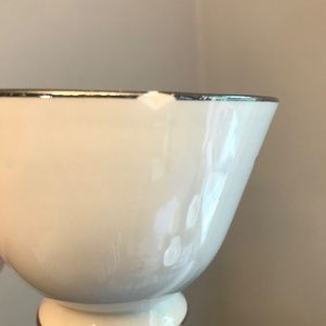 Beautiful set of dishes. Service for 4. Has gray leaves and blue dots. One tea cup has a small chip (pictured)