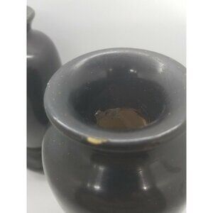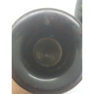 Condition is good, but up close you can see some scuffing on the outside and a chip on the rim of one vase. It also has a cracked plastic interior.