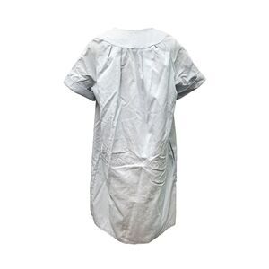 Make a day around the house extra special in this 195s iconic "house dress". It was made by "Leisure Lady" brand who considered their garments "Loungewear of Distinction". It is lovely pale blue and white strip fabrication with a comfortable, lightweight 73% acetate and 27% cotton blend. It boats a classic, long line, comfy shape with short sleeves and a pocket on one side seam. It has large buttons down the center front as well as floral embroidery accents. Perfect for entertaining guests or lounging around your home in mid century style! Its label inside notes the size at "16" but its spacious silhouette would fit almost anyone. See measurements below.