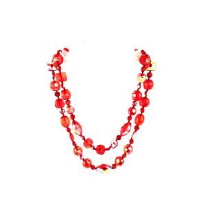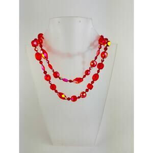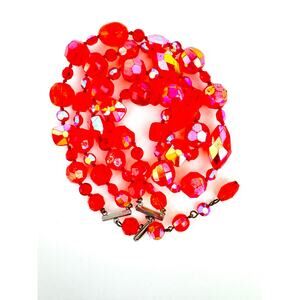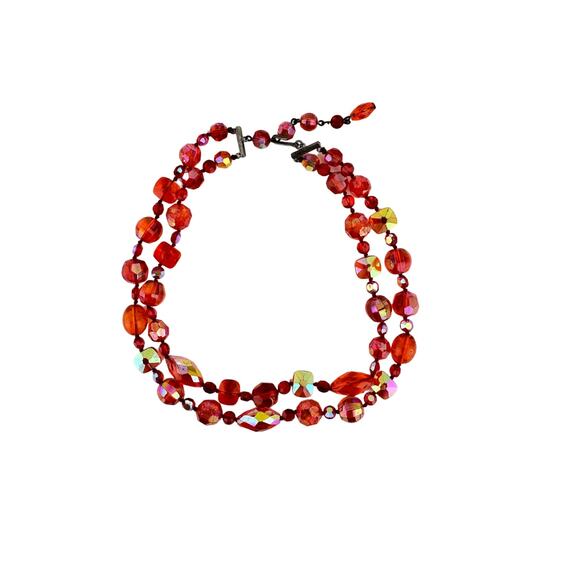 1950's Orange Aurora Borealis Graduated Beaded Two Strand Necklace