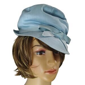 1950s Pale Blue Bucket Cloche Hat Scrunched Bow Detail with Brim USA Union Made