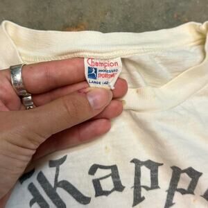vintage frat tee, 50s champion, college varsity, screen print, retro athletic, collegiate style, university emblem, soft cotton, distressed look, casual wear