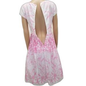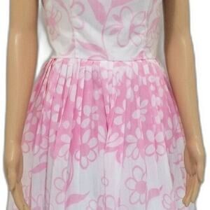 1950s Pink White Floral Handmade Pleated Fit Flare Short Sleeve Puffy Midi Dress Size Small