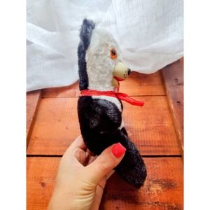 This adorable stuffed panda is a vintage gem from Takara Trading Co, made in Japan in the 1950s. With its small size, it's perfect for collectors or kids alike who love stuffed animals. The panda has a unique rubber nose and is in great shape, despite being a used item.