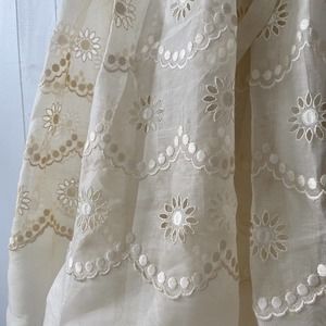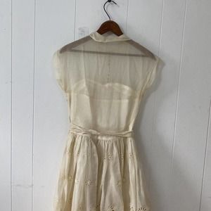 1950s Sheer Eyelet Embroidered Organza Party Dress Rounded Collar Satin Buttons