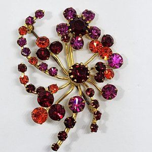 1950's Stunning Red, Orange, Pink Austrian Crystal Pin Brooch Made in Austria