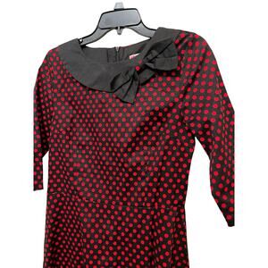 1950's Style Dress Red polkadot black bow Vogue Fashion Size M Vintage Woman's