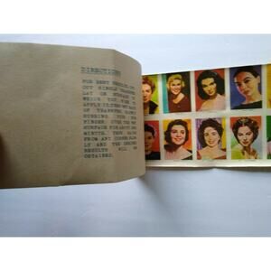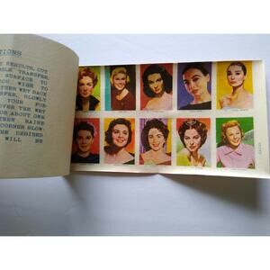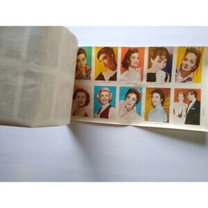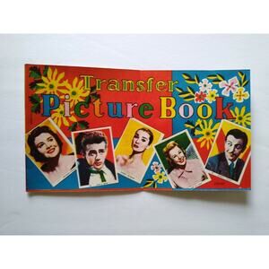 Scarce vintage made in Japan transfer picture book with movie stars of the day. Has center crease and wrinkles. The back page which is plain has corner tears. Booklet is staple together. Size is 8.25" x 4.5". Some of the stars inside are; Pier Angeli, Leslie Caron, Debbie Reynolds, Mitzi Gaynor, Doris Day, Jeffery Hunter, Rock Hudson, Randolf Scott, Clark Gable, Robert Talor, Raymond Pellegrin, John Wayne Tony Curtis, James Dean, Deborah Kerr, Vivien Leigh, Audrey Hepburn, Rossana Podesta, Elizabeth Taylor, Ava Gardner, and June Allyson. Some are pictured more and once and some do not have names under the images. Total of (30) color image transfers are inside the booklet.