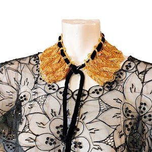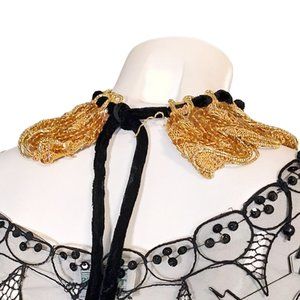 1950s True Vintage Gold Thread And Sequin Detachable Collar With A Velvet Tie