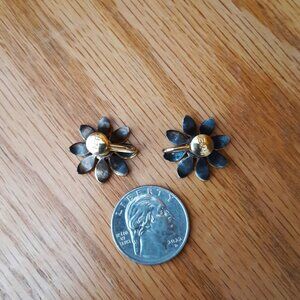 1950s VTG Bugbee & Niles Floral Daisy Screw Back Earring Ruby Red Center Signed