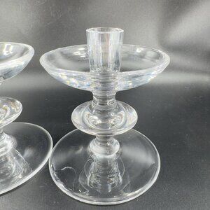 1950s Val Saint Lambert Clear Glass Candlestick Holder Votive Set 2 Signed VTG