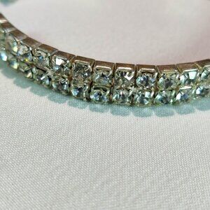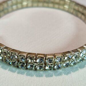 1950s Vintage Bangle Bracelet with a Double Row of Clear Rhinestones