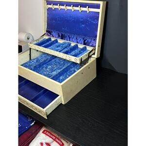 1950’s Vintage Blue Velvet & Satin Lined Cream Jewelry Box Pop out Drawer