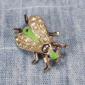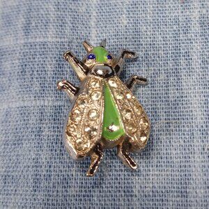 1950s Vintage Bug Pin with Clear Rhinestones and Green Enamel by Coro