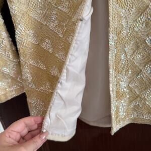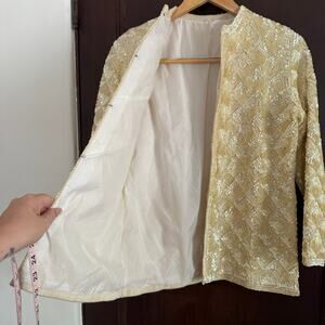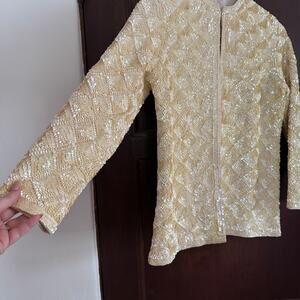 1950s Vintage Creamy Butter Yellow Sequin Patterned Evening Jacket Blazer XS