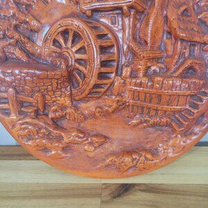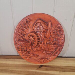 1950s Vintage Farmhouse Cottage Watermill Scene Hangable Countrycore Wall Art 11" Round