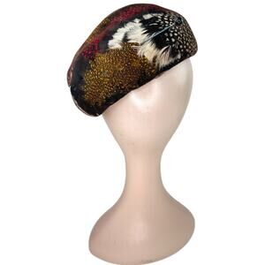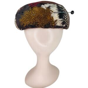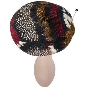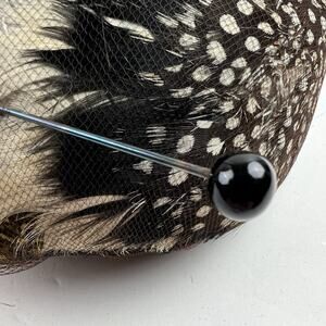 1950s Vintage Feather Tilt Hat Guinea Fowl Pheasant Vintage Percher Millinery