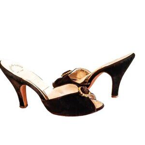1950s Vintage Genuine Springolator Brown Real Velvet High Heel Slides Shoes
