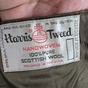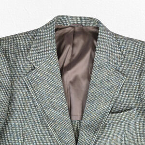 1950s Vintage Green Harris Tweed Blazer Jacket USA Made Scottish Wool Size 46R