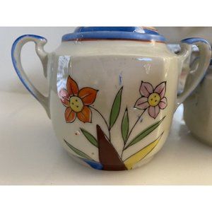 1950's Vintage Japanese Porcelain Lusterware 2 Piece Tea Set Floral Design Great