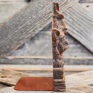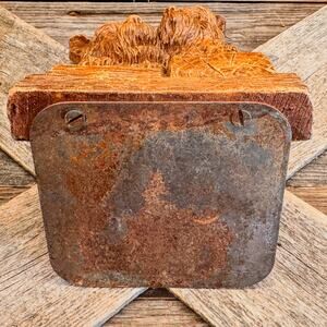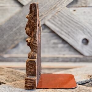 Condition: Beautiful vintage condition from the front view of piece. The back of bookend does show some wear, and this can be seen in photos. The bottom of Metal piece on Bottom also has some rust which can be seen in photos.