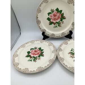 1950’s Vintage Paden City Pottery Warranted 22K Gold Dinner Plates 9.5” Set Of 3