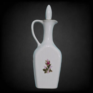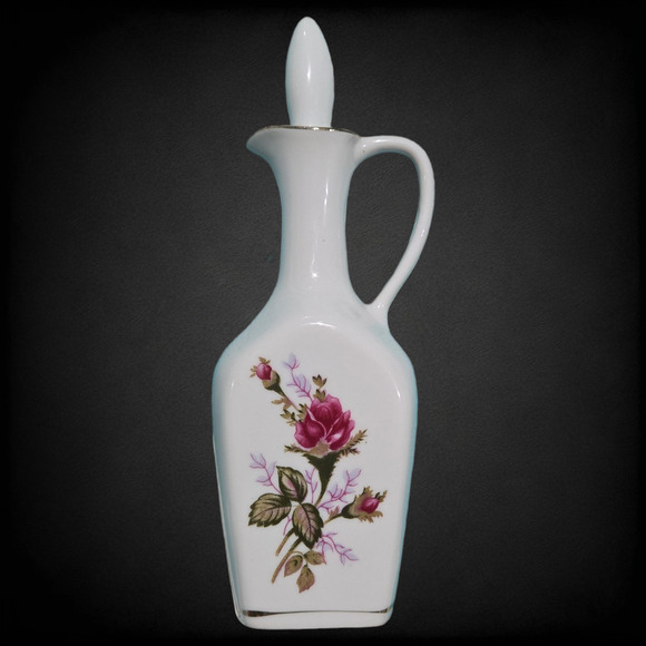1950s Vintage Porcelain Decanter Floral Gold Trim Cork Stopper Mid-Century Cruet