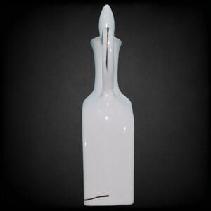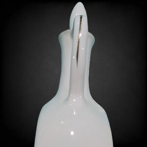 1950s mid-century porcelain decanter with curved handle and cork stopper