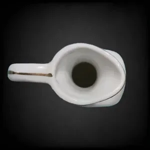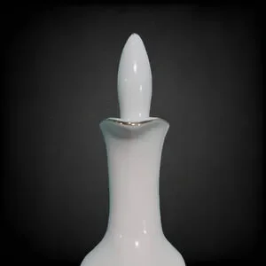 1950s mid-century porcelain decanter with curved handle and cork stopper
