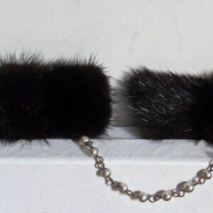 Adorable Designer made Deep Reddish Dark Brown Mink Fur with Faux Pearl Link Chain Sweater Guard!
