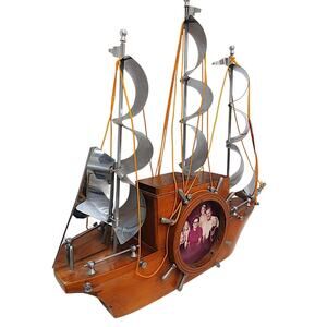 Made of wood with a cedar finish, this vintage mantel clock features a sailing ship design, perfect for those who appreciate nautical themes and retro styles.
