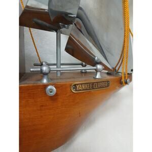 This 1950s Vintage Wooden Boat Sailing Yankee Clipper Ship Wood Mantel by United Clock Corp is a stunning unique and nostalgic decorative piece for any room.