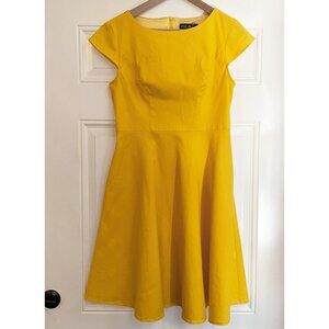 This lightweight dress features a round neck, cap sleeves, concealed back zipper, 2 side pockets, and a full skirt. Includes fabric belt. Top is lined, skirt is unlined. Add a petticoat underneath for a vintage look! 95% Cotton 5% Spandex