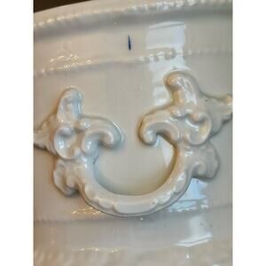 1950’s White Porcelain Cache Pot, Tray from Alcora with Rams Decoration RARE 1950's White Rams Head Jardinière from Alcora, Spain1950’s White Porcelain Cache Pot, Tray from Alcora with Rams Decoration RARE 1950's White Rams Head Jardinière from Alcora, Spain