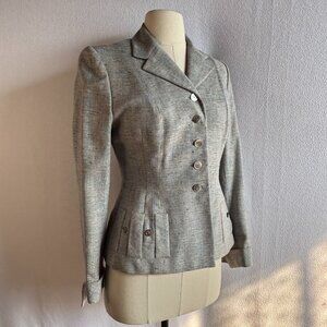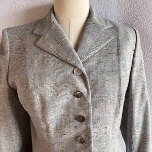 1950s Woman's Blue Gray Tweed Nipped Waist Career Blazer Jacket