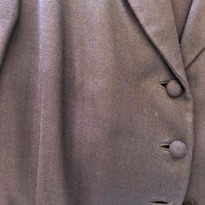 1950's women's suit, has hand sewn label in jacket. Martins Brooklyn Garden City. Union label. 4 fabric covered original buttons. Second label: “Manufactured under are Union Labor Conditions.” Lined jacket. (sleeve length is 24", bust 28", length of jacket is 26") The color is muted blue/purple (indigo).
