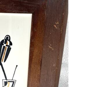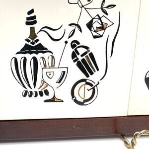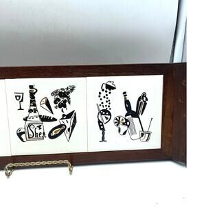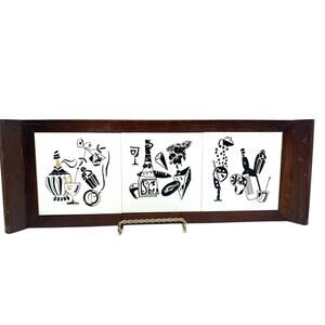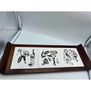 1950s Wood Framed 3 Tile Sansco Japan Serving ,wall decor, Barware Mid Century