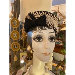 1950s pillbox hat, volk dallas, mid century fashion, 1960s hat, black straw, bow