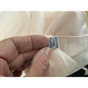 Lovely pastel pink peignoir that includes a nightgown and fly away robe. They are both made of nylon but are from different makers. The nightgown is Vanity Fair and the robe is Rogers Run-Proof. They were found together and were worn together.