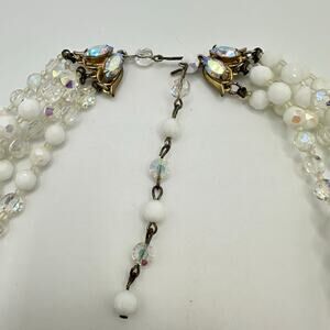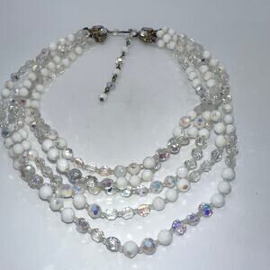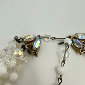 1950s vintage aurora borealis clear milk glass 5 multi strand beaded necklace