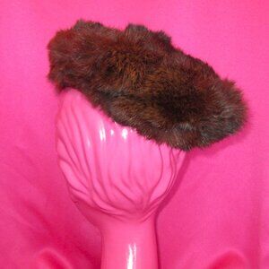 warm winter stylish 1950s vintage brown furry new look hat rockabilly mid century halloween costume cosplay 50s pinup pin up 1960s jackie o 50s mid century church cosplay fancy dress party 1950s brown fur beret pillbox hat beltone sz 21